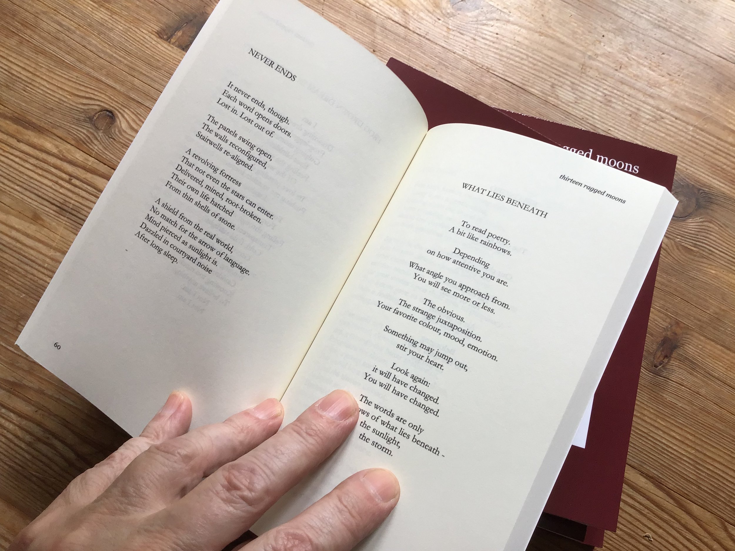 “Thirteen Ragged Moons”, a collection of poems from last year, including the poem that won the Chair at Llanwrtyd Eisteddfod.